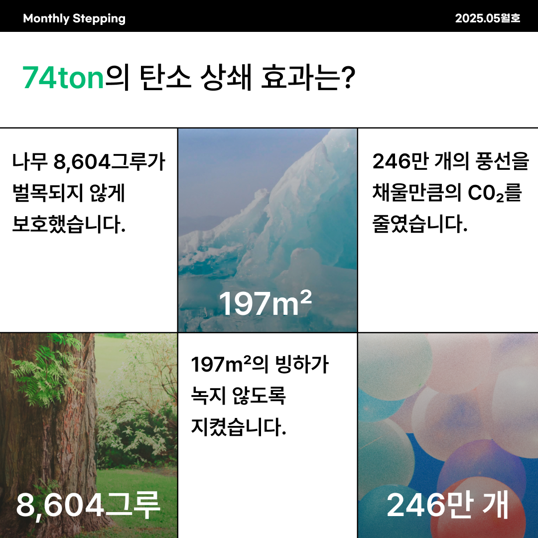 - [안내] 4월에 함께 상쇄한 총 탄소량은 74톤이에요 🏅