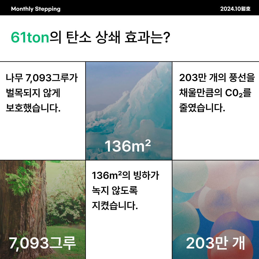 [안내] 9월에 함께 상쇄한 총 탄소량은 61톤이에요.