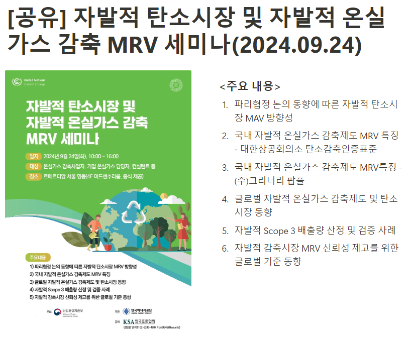 9월 24일에 한국표준협회에서 진행한 세미나에 다녀왔어요. 자발적 탄소시장과 온실가스 감축제도에 대해 관심있으신 분들을 위해 정리한 내용을 일부 요약해 공유드려요.